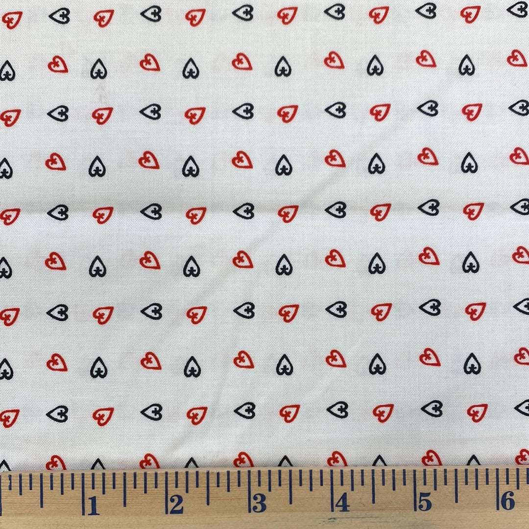 Make a serious statement with our Cross My Heart - White CX9128 by Michael Miller. This fabric features small pen drawn hearts on a solid background. Add some fun to your work (and maybe even sneak in a little love) with this fabric.