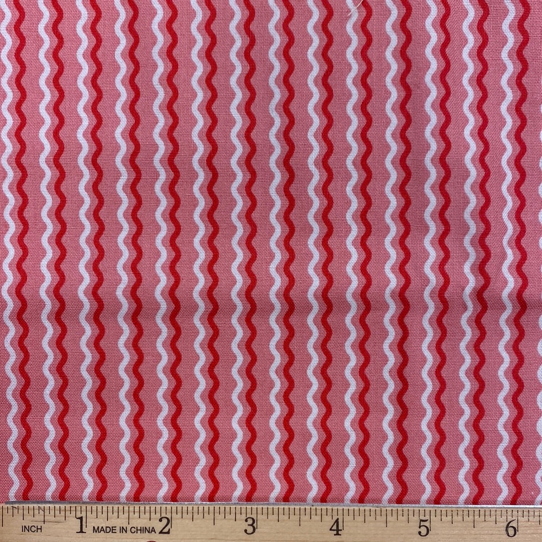This fabric with wavy lines in dark pink and white on a broght pink background (MAS8255-P) is part of the Kimberbell Basics line designed by Kim Christopherson for Maywood Studio. This fabric adds a bold pink color to projects.