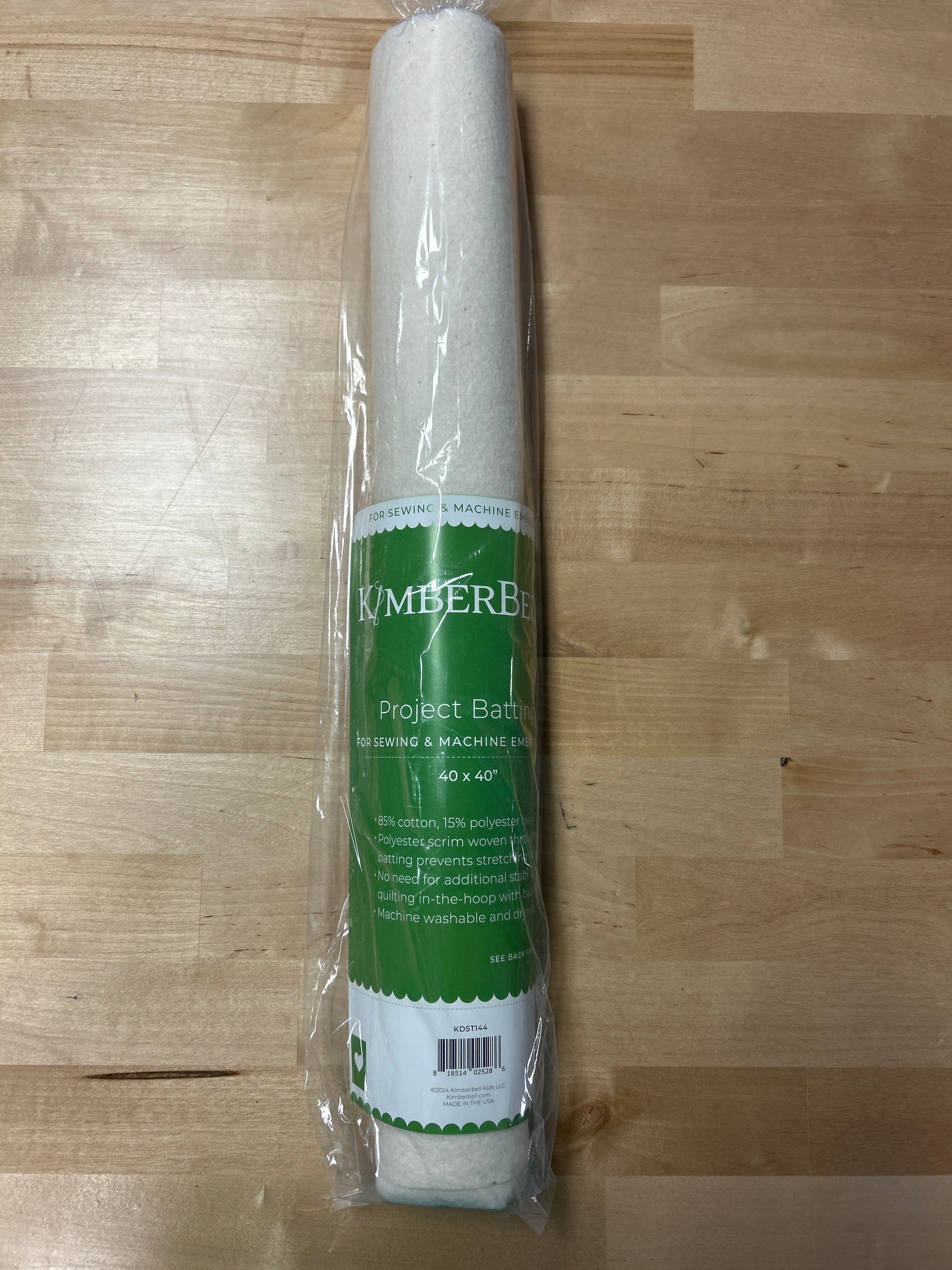 Kimberbell Project Batting gives dimension, texture, and stability to a variety of sewing and machine embroidery projects. Woven with a scrim liner to prevent stretching and pilling, our batting is made from a soft cotton/poly blend and is safely laundered in the washer and dryer.
