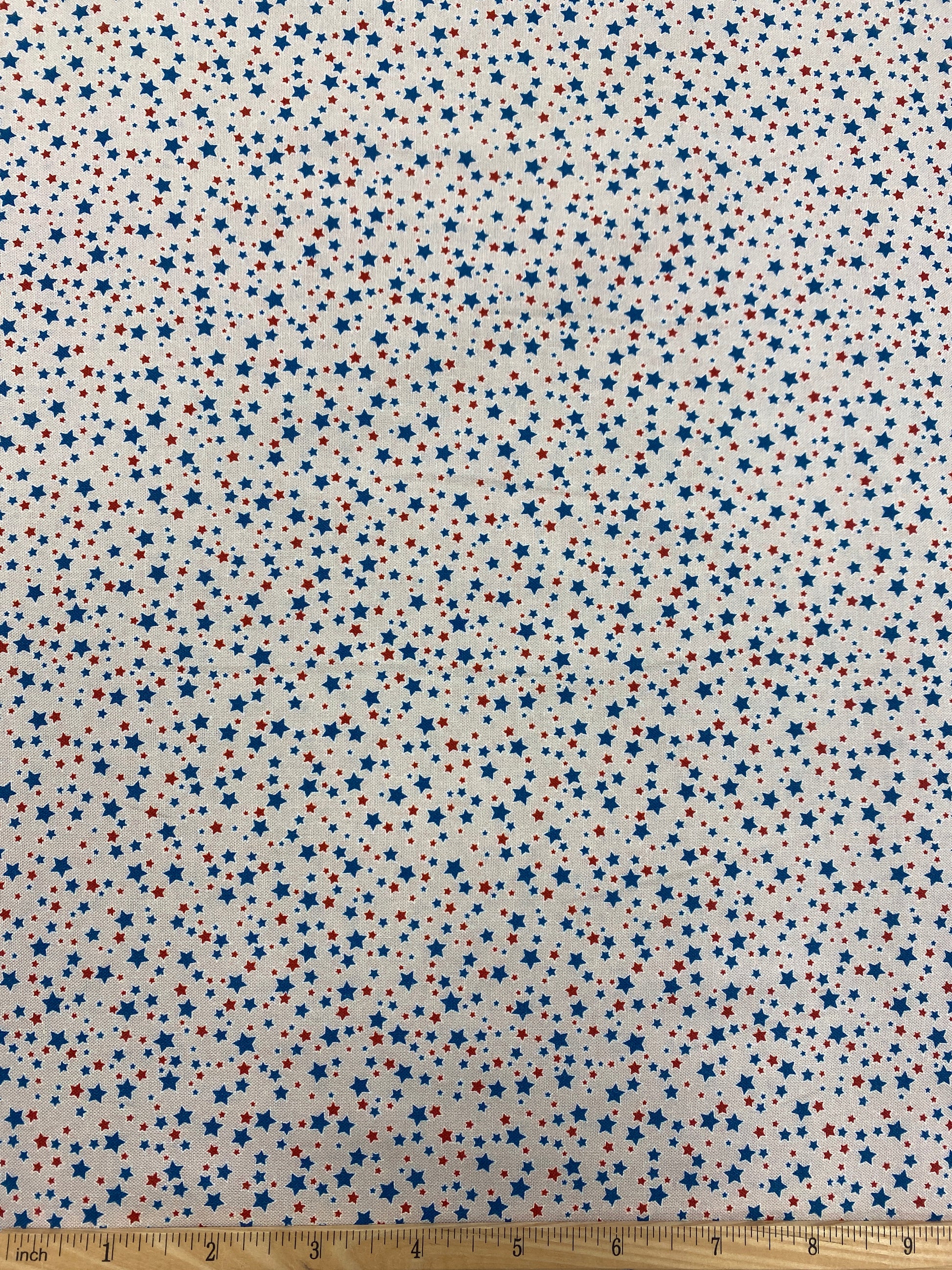 Add a touch of American fun to your projects with this Stars of Valor fabric! This beige fabric from River Bend is adorned with charming small red and blue stars, making it perfect for any playful creation. Elevate your designs with this quirky and unique fabric!