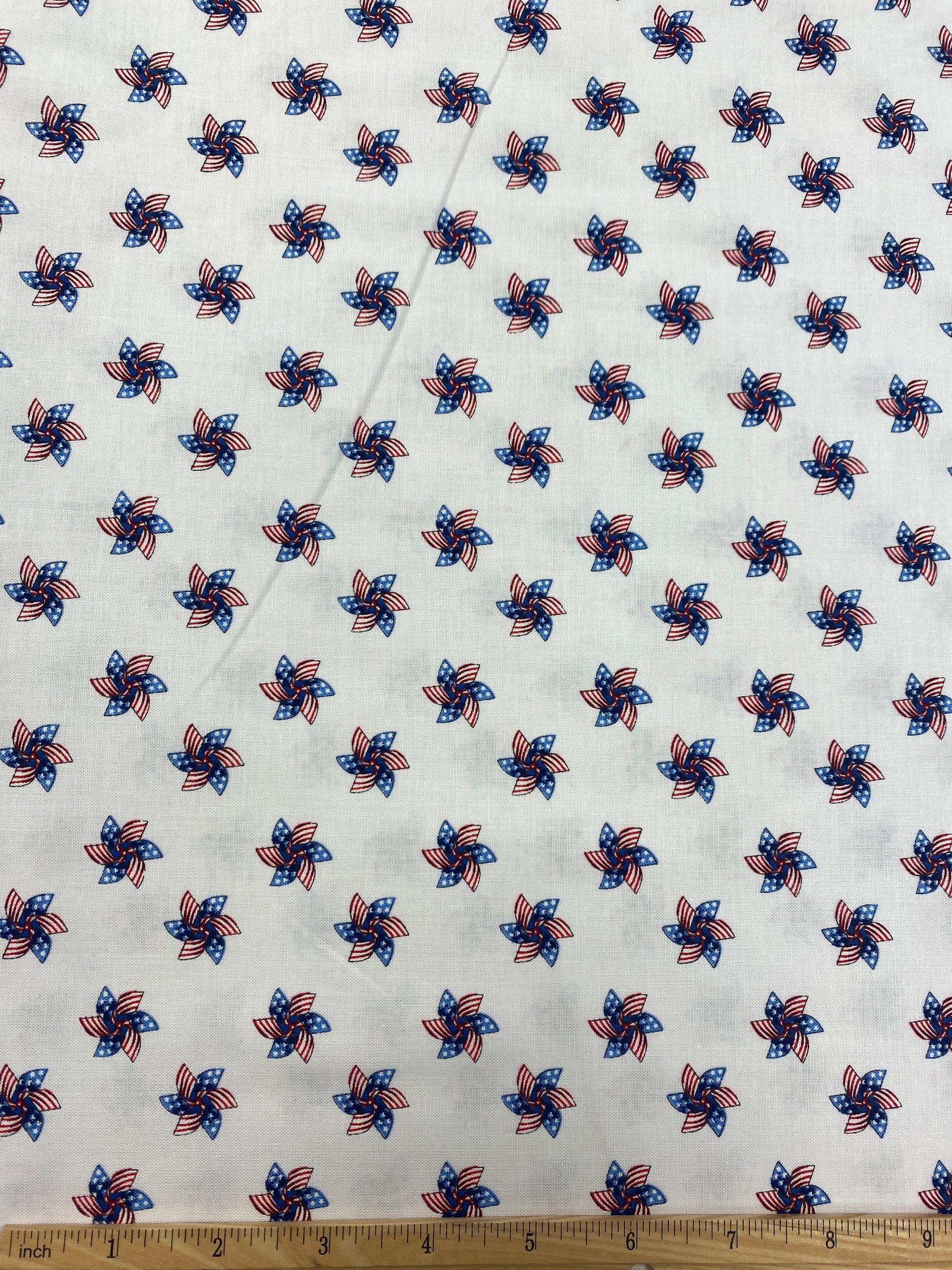 Made by Robert Giordano for Henry Glass &Co. this white fabric fetures spinners with stars and stripes!